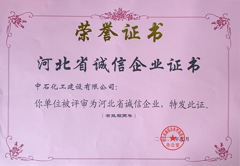 在河北省誠(chéng)信企業(yè)評(píng)選委員會(huì)辦公室聯(lián)合河北省企業(yè)家協(xié)會(huì)組織的2021年“河北省誠(chéng)信企業(yè)”評(píng)價(jià)選樹工作中,公司堅(jiān)持誠(chéng)信經(jīng)營(yíng),努力提高企業(yè)的誠(chéng)信建設(shè)水平,積極履行好社會(huì)責(zé)任,再次榮獲河北省誠(chéng)信企業(yè)。